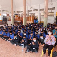 นายประมวล พฤฑฒิกุล ผู้อำนวยการสถานศึกษา พร้อมด้วยรองผู้บริหารสถานศึกษา คณะครูและนักเรียนโรงเรียนเทศบาลวัดไทรอารีรักษ์(มณีวิทยา) จัดกิจกรรมทำบุญตักบาตรข้าวสารอาหารแห้ง และถวายภัตตาหารเพลแด่พระภิกษุสงฆ์ ณ วัดไทรอารีรักษ์ เนื่องในวันขึ้นปีใหม่ |
