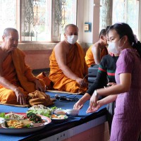 กิจกรรมทำบุญตักบาตรข้าวสาร อาหารแห้ง และถวายเพลแด่พระสงฆ์ เนื่องในวันปีใหม่